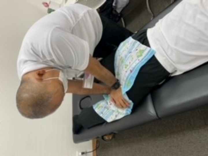 脳梗塞後遺症、右下肢麻痺の患者様を想定しての練習風景!!