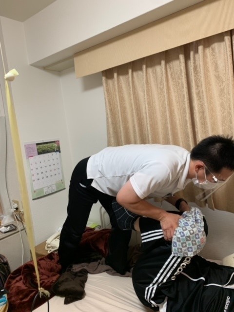 現在は元々腰痛持ちであった事もあり、軽い脊柱管狭窄の診断も受けている状態で、歩行は出来るものの腰部の怠さに加えて間欠性跛行(一定の距離を歩くと、下肢に痛みや痺れ、疲労感が現れ歩行が困難になる)が現れていますので腰部の治療を主に行っています。患者様は脳梗塞後の治療によって自立歩行出来るまでに回復して生活の質が向上してはいますが、歩行の姿勢等で各部に負担がかかり、行動の幅が広がる事で身体各部に負担がかかる事も増えているのが現実です。